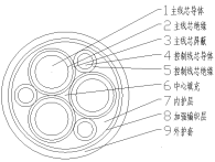 3、內護套層與外護套間有一層芳綸絲編織,提高電纜機械性能。